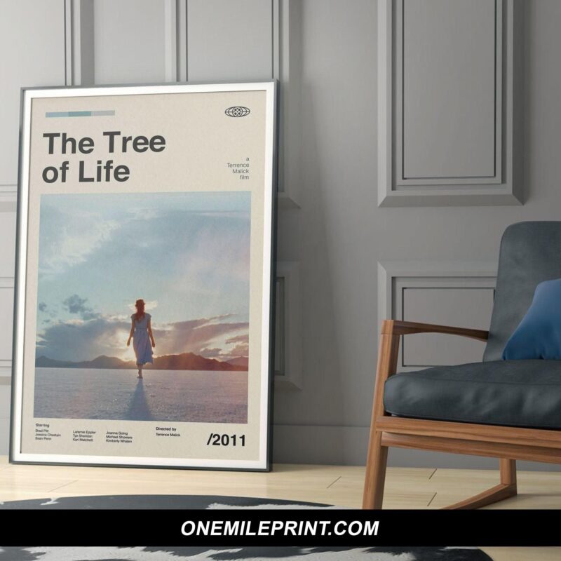 The The Tree of Life movie poster is a stunning example of Mid-Century Modern design, blending retro charm with minimalist sophistication. Its clean lines and geometric shapes create a design that is both bold and understated, making it the perfect addition to any contemporary home.