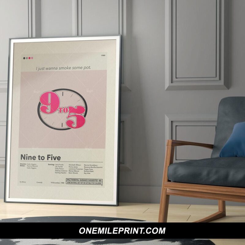 Minimalist posters are popular for their ability to create a serene and uncluttered atmosphere. The Nine to Five poster captures the essence of the film with simplicity and elegance, offering a visually striking design that doesn’t overpower the space.